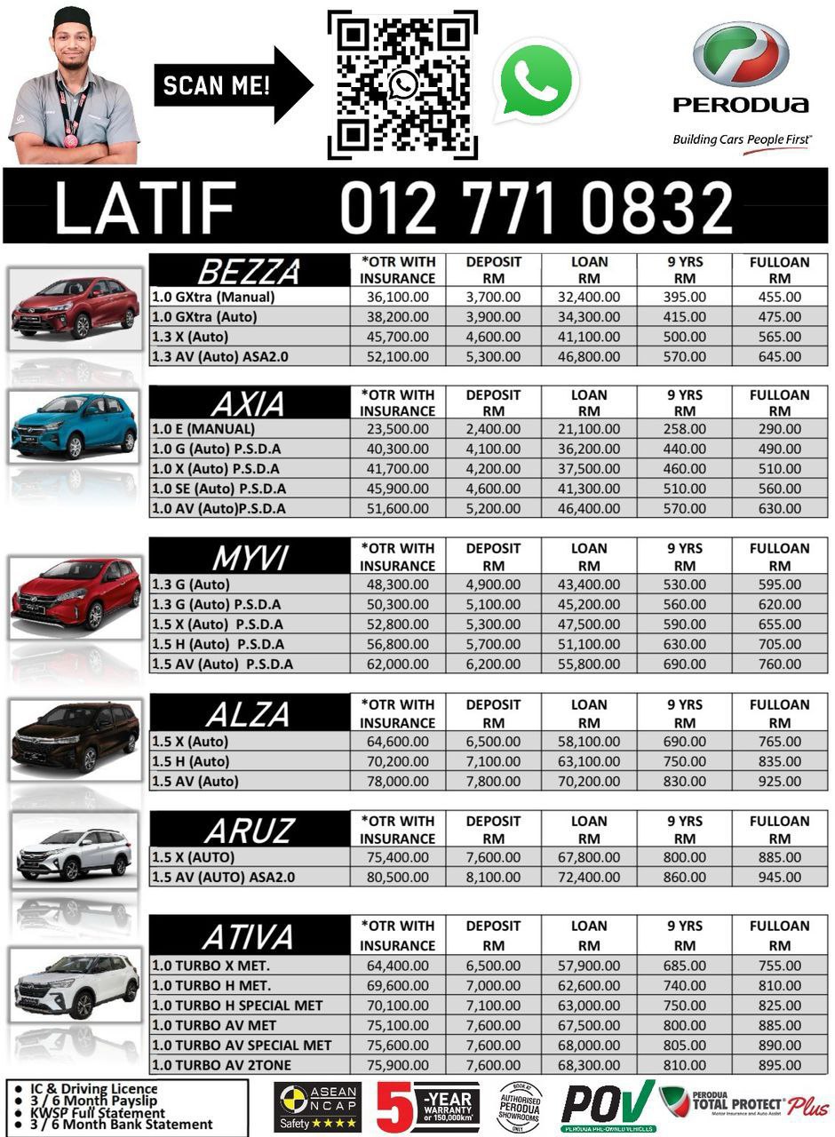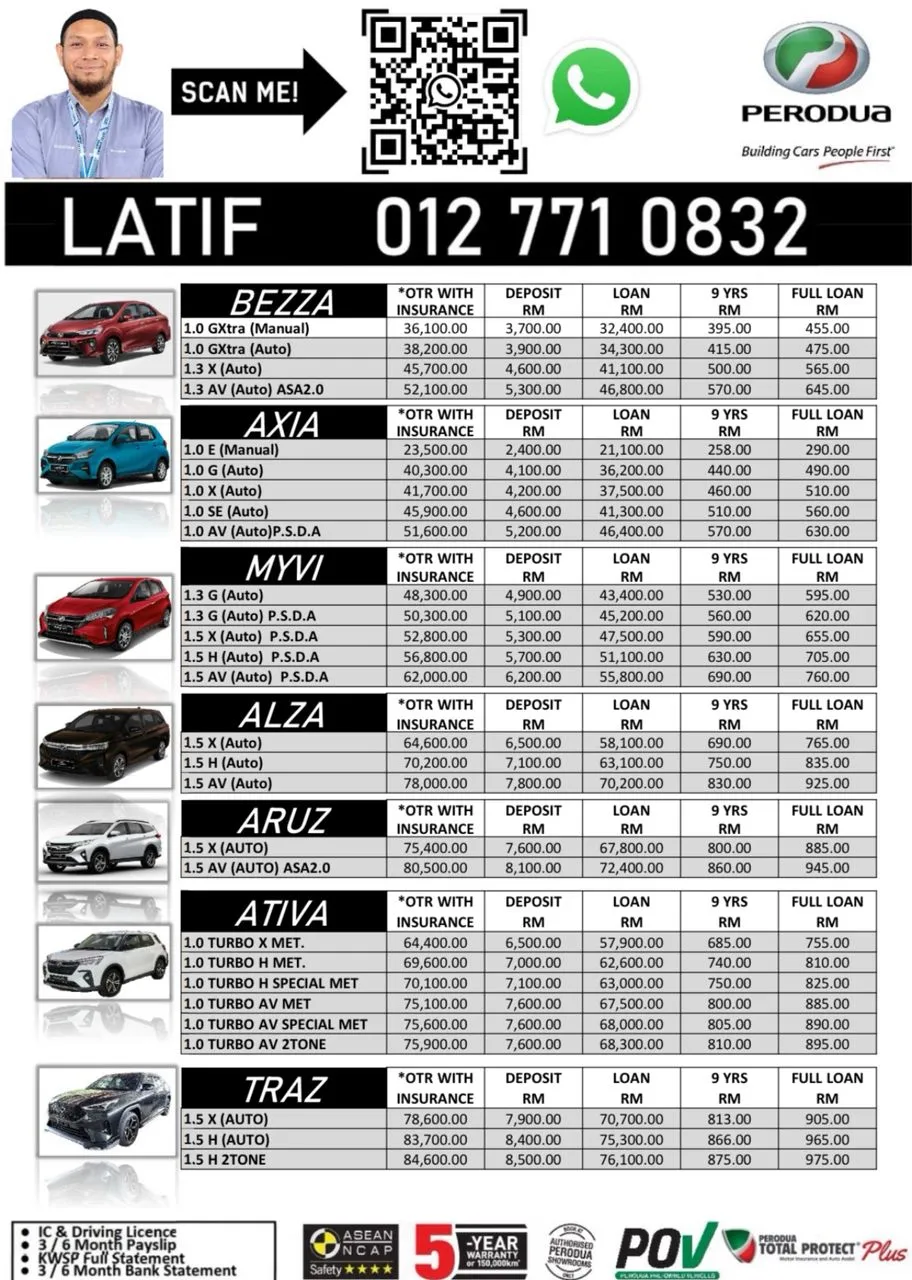 Hai! Nama saya Latif , Sales Advisor Perodua Kluang yang sah. Berpengalaman lebih 7 tahun dalam bidang jualan kereta di Malaysia.